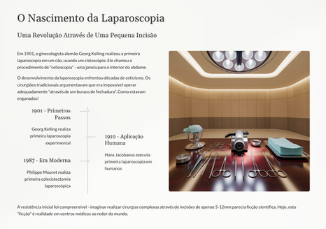 Nesta série, vamos percorrer a trajetória de invenções como a antissepsia, a anestesia, os bisturis elétricos e ultrassônicos, a laparoscopia e tantas outras. Mais do que falar de técnicas, queremos transmitir confiança: a ciência nunca parou de buscar formas de cuidar melhor de você.